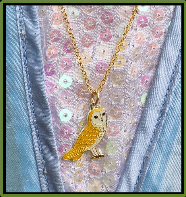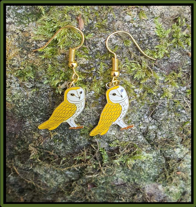 The Enamel Barn Owl is approx 20mm high. The Necklace is gold plated as are the traditional ear hooks.