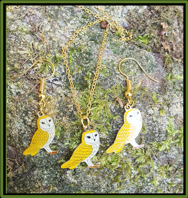 These Enamel Barn Owls are a unique design crafted especially for the Barn Owl Trust. They are available either as individual items, necklace or Earrings and also available as a Jewellery Set at a special price.