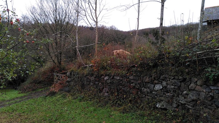 A Grey Heron flew up the valley and over the orchard to the ponds in the endless rain on the 9th. The river was in spate. On the 10th Harry put the final touches to the 3rd and final Field Shelter in North Park and confined the goats to do some concerted grazing in that field. By the 10th we had some rain every day and had totalled 88mm. Harry began clearing out the 1st Field Shelter in the Main Field ready for laying the slabs. Two of the goats, Archie and Alfred had got out of North Park into the orchard, fortunately as Annie hadn’t got in too, they were very happy to be taken back out to join her. Harry replaced some missing staples on the fence posts.