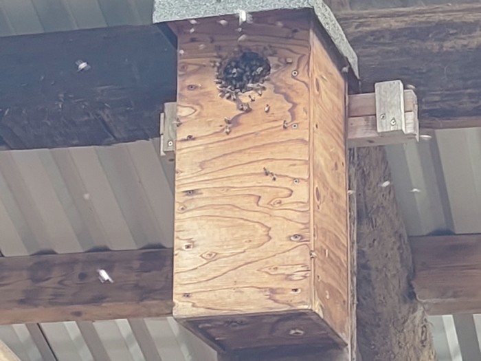 On the 11th Mateo led the first Bird Walk of the Winter, there were just two visitors but they were very enthusiastic. It was windy, with only 14 species seen: Blue Tit, Great Tit, Robin, Chaffinch, Siskin, Meadow Pipit, Redwing, Blackbird, Wood Pigeon, Raven, Carrion Crow, Magpie, Sparrowhawk and Herring Gull. On the 13th Harry began strimming the top of Forde Orchard leaving a 2m area around each tree to avoid hitting the windfalls lying on the ground. The Bees in the Mandarin Duck box on the Tractor Shed were really active during the sunshine at midday. With help from volunteer Jane, on the 14th Harry cleared the stream bed between the two ponds and started clearing the bramble growth on the higher wall in Forde Orchard. There was a Field Vole nest under the corrugated sheet near the 1st Field Shelter in the Main Field.