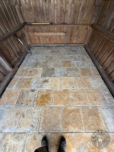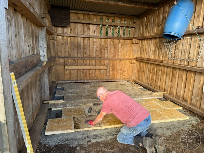On the 17th volunteer Steve and Harry started laying the slabs in the 1st Field Shelter, they got 7 out of the 9 rows done. There was a flock of around 15 Redwing feeding on Holly in trees along the Ashburn by the Apprentice Path. Harry finished the slabs on the 18th. There were around 15 Goldfinch, 20 Chaffinch and 20 Linnet on the new crop, mainly perching in trees along the Pennsland Lane boundary and a Kestrel resting on the long telegraph pole in the old crop. On the 20th Archie and Alfred had got back into the orchard. flock of about 100 Linnet were in the new crop on the 21st, feeding on fodder radish seeds. Also 30 Chaffinch and 20 Goldfinch, many moving between the North Park hedge and the crop. There were also Stonechat in the crop, a small group of Fieldfare moved along the Pennsland hedge, there were Song Thrush in that hedge too. There was ice on the water trough in North Park and in shady areas the ground frost stayed around all day. Harry and volunteer Tom worked on the fence line in North Park where the goats are getting into the orchard, raised it by 18 inches and added batten to hopefully stop them getting in. It didn’t work! On the 23rd Archie and Alfred were discovered in the orchard again! There were 200+ small birds flying up from the new crop in small mixed flocks